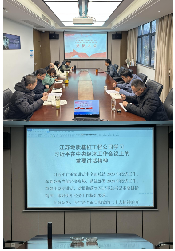 12月15日上午,江苏地质基桩工程公司机关党支部召开第四季度党员大会,会上认真传达学习了习近平总书记在中央经济工作会议上的重要讲话精神。 会上提出,公司要深刻领会中央经济工作会议精神,准确判断2024年市场发展形势,科学部署2024年公司经济发展工作。要把坚持高质量发展作为新时代的硬道理,完整、准确、全面贯彻新发展理念。切实提振发展信心,坚持稳中求进工作总基调,以“进”的姿态守牢“稳”的底线,把提规模、增效益、强管理、控风险、聚人心作为工作的主线。要增强责任感使命感,抓住一切有利时机,利用一切有利条件,努力以自身工作的确定性应对形势变化的不确定性,善于从国家经济回升向好的态势中把握机遇、创造价值,推动实现公司经济质的有效提升和量的合理增长。 会上大家纷纷表示,要按照党中央的部署,切实把思想和行动统一到中央经济工作会议的决策部署上来,勠力同心、勇毅前行,奋力推动2024年公司经济高质量发展。(综合办 张嘉慧)